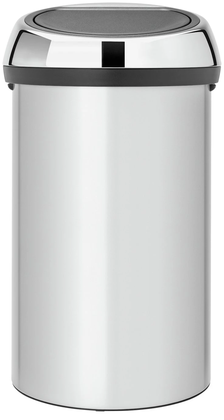 Brabantia Touch Bin 60 litre Metallic Grey with brilliant steel lid. Easy and light operation – Brabantia's 'Soft-touch' closure. Extra large opening and large volume. Removable lid unit. Sturdy carrying handles. Protective base rim prevents damage to the floor. High quality materials, 10 Year Guarantee. Matching Brabantia bin liners available, size code H.