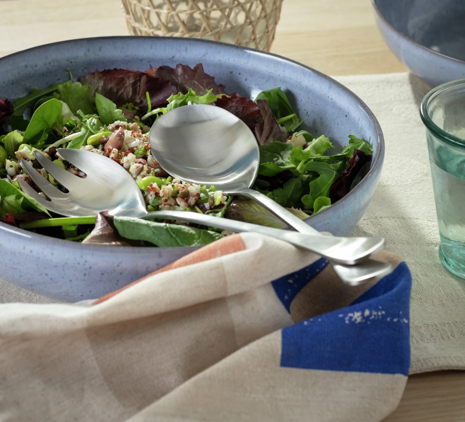 Help yourself to these 2 smart Evora serving spoons. Whether you're dishing out salad or spinach, pasta or potatoes, this pair will lend a hand. Brilliant for buffets too, dig in, scoop up, put down, easy. Crafted in stainless steel with a buff satin finish, they have a fresh contemporary look and a satisfying quality feel. Ready for seconds?