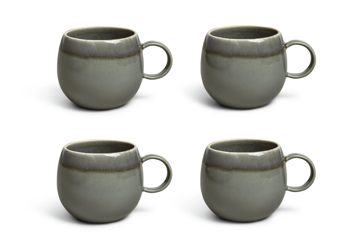 Our set of 4 Evora stoneware mugs are full of character. The glossy reactive finish means each piece subtly unique. In a gorgeous green, they sit beautifully in modern or country kitchens. The curvaceous and tactile design feels so comfortable as you cradle your morning coffee or tea. Just pop in the microwave to heat up and stack in the dishwasher when you're done. Sip in style. Love this organic, one-of-a-kind look? Match with more in our Evora collection.