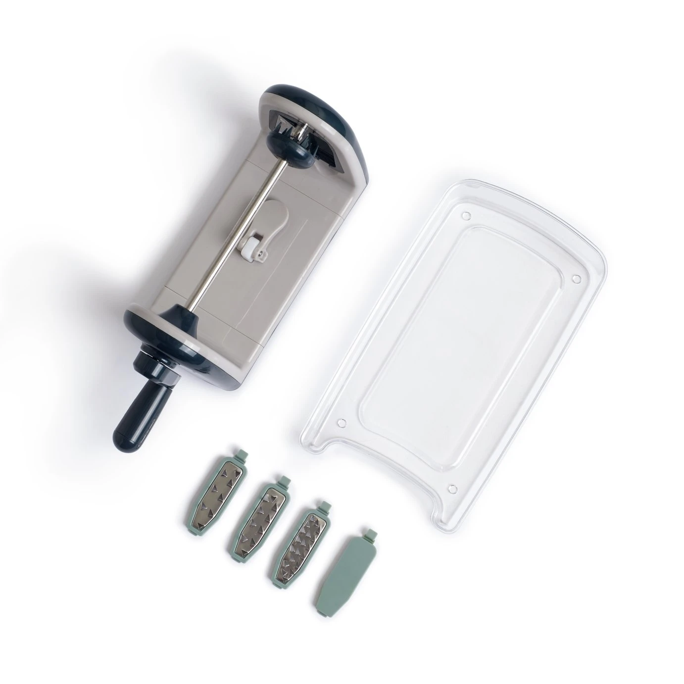 We're all in a whirl! Rotate the handle of this sturdy, worktop spiralizer and watch courgettes, carrots and cucumber turn into delicious edible swirls. Who needs pasta when you have courgetti spaghetti? Choose from 4 cutting blades. Suctions on the base so it won't slip and cleaning is easy too. Spiralise away and turn your 5-a-day, into 10!