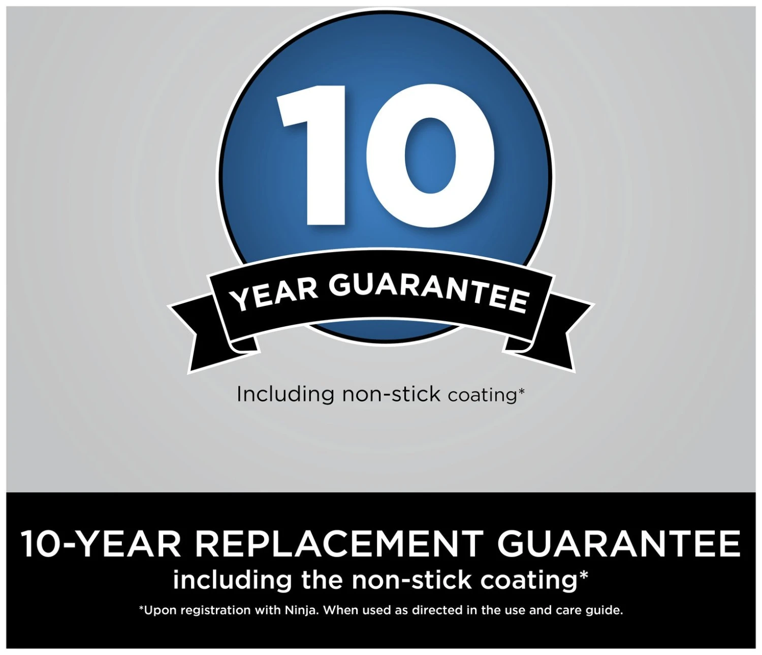 Zero chip, flake or peel – Ninja ZEROSTICK is dishwasher safe, scratch resistant, durable and long-lasting. Crafted from forged aluminium for even cooking and excellent searing, with cast stainless steel handles. Cook using little to no oil. PFOA, lead and cadmium free.